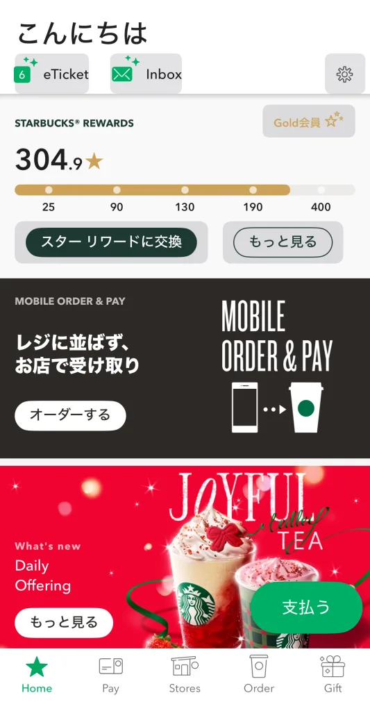 Starbucks eGift(店舗で利用できるデジタルチケット)を