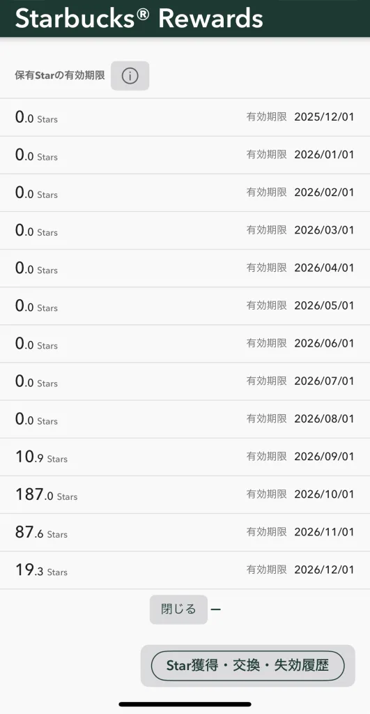Starbucks RewardsのStarの期限を正しく把握していないと、