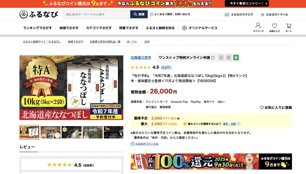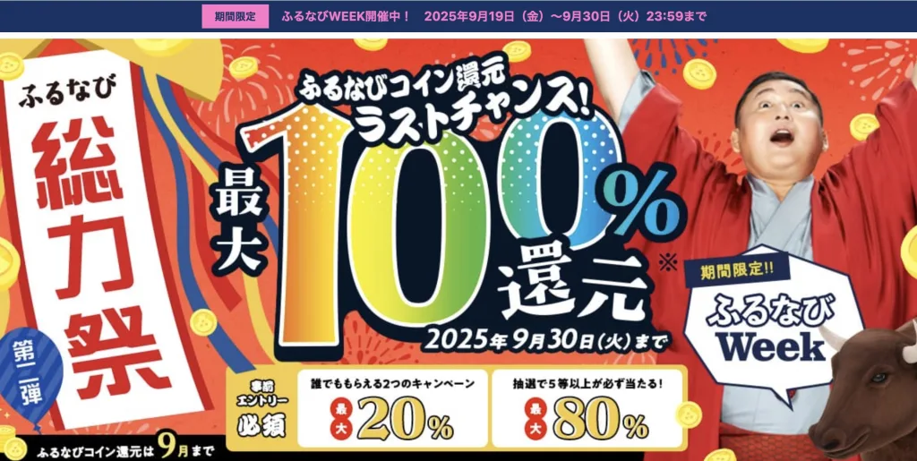 ふるなびは9月19日からキャンペーンが恥まっいたので、