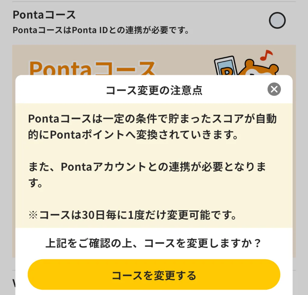 | Pontaコース | 35,000スコア | 250 Pontaポイント | 140スコア = 1P | Pontaポイントへの自動交換が可能で、最も交換レートが良い |